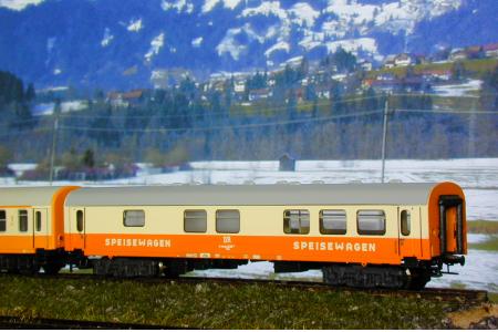 den attraktiven gelben Zierstreifen versehen. Bis Ende 1993 waren alle Speise- und Buffetwagen